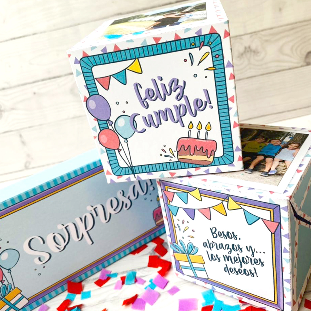 No incluye el formato de las fotos. Se deben armar de 7×7 cm. y pegar en el cubo correspondiente.
